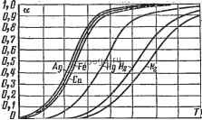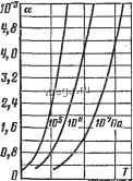 токов; .Ген, JiK - ПЛОТНОСТИ направленных электронного и ионного токов; Ei - продольная напряженность электрического поля. Для средних давлений газа связь между этими параметрами устанавливается с помощью диффузионной теории. Рис. 3-36. Универ-К/б сальная зависимость температуры элект- произведения давле-ния газа Ро на радиус разрядной трубки R (S - постоянная для данного Газа). 10 10 ID ID gV Температура электронного газа Ге жет быть найдена из выражения е = 1,16-106 (spR)?, VeUilkTe где Ui - потенциал ионизации газа. В; ро - давление газа, Па, приведенное к 273 К; R - радиус разрядной трубки, м; - константа для данно- го газа (табл. 3-12); Яео - средняя длина свободного пробега электронов при 1 Па, м; Цг-подвижность ИОНОВ. На рис. 3-36 приведен универсальный график зависимости температуры электронного газа от произведения spoR. Продольная напряженность электрического поля в плазме может быть вычислена по формуле где R - радиус разрядной трубки; Do - коэффициент двуполярной диффузии; Ui- потенциал ионизации; ixe - подвижность электронов; - доля мощности разряда, расходуемая на ионизацию. На рис. 3-37, а приведены экспериментальные кривые зависимости продольной напряженности поля Ei от давления газа для инертных газов при диаметре разрядной трубки £)=2 см, а на рис. 3-37,6 - зависимости EiD от давления паров ртути. Распределение концентрации зарядов по сечению разрядной трубки характеризуется формулой Пег = ео 1 I 5 где Пег - концентрация зарядов на рассто- ЯНИИ г от оси трубки; Пео=2,3--=-- enR?iie El концентрация зарядов на оси; J, функция Бесселя нулевого порядка; R - радиус разрядной трубки. Средняя концентрация зарядов Пе = Пео/2,3. Плотности беспорядочного электронного Je и ионного Ji токов опредсляются из соотношений /е = 2,48.10-1 ПеКт, ; ноБИтся ПО СБОИМ свойствам близкой к изотермической плазме (Ге=Гг=Г ). Основными процессами в плазме высокого давления являются термическая ионизация и рекомбинация зарядов в объеме. Степень ионизации газа характеризуется уравнением Саха Л-= 4,96.10-16; те Mi где Пе и т - средние концентрации электронов и ионов; Те, Ti - температуры электронного и ионного газов; те, nii - массы электрона и иона. т зов гвв ![]() D,t t ID 100 Па а) Рнс, 3-37. Зависимость продольной напряженности поля Ej в плазме разряда от давления газа. а - в инертных газах при разрядном токе /д = =0,3 А и диаметре трубки 2 см; б - в плазме ртутного разряда для различных диаметров разрядной тру.бки D при токе /д =3 А. Соответственно Плотность направленного электронного тока /ен определяется как Jen = епе lie El ~ = 3.8.10-1? n,- EL Экспериментальное исследование параметров плазмы при средних давлениях, результаты которого были приведены выше, проводится по методу зондов Ленгмюра [3.3]. Для плазмы низкого давления диффузионная теория неприменима, и некоторые основные соотношения могут быть получены по теории Ленгмюра и Тонкса. Теория плазмы высокого и сверхвысокого давления основана на том факте, что с ростом давления газа средняя кинетическая энергия заряженных частиц приближается к средней кинетической энергии частиц нейтрального газа, т. е. плазма cta- ар=АТе , где а - степень ионизации (пе=Пг=ап); р - давление газа; Л=6,55-10-2; Т - температура газа; Ui - потенциал ионизации газа. На рис. 3-38 приведены графики зависимости a=f(T). ![]() 5DDD BDDD 7DDD 80DDK а) ![]() В 8 10 !2 п IB W готк В) Рис. 3-38. Зависимость степени термической ионизации а от температуры Т. а - для ртути при разных давле