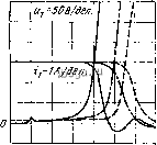 Рис. 6. Осциллограммы процессов в СКПН при коммутации нидуктив- ной нагрузки: а -выключение СКПН-ОЭ (----) и СКПН-РЭ с транзистором иа ток /к=10 А по схеме рис. 4,а с внешним ограничением (---------) и без внешнего ограничения (-); б - выключение СКПН-РЭ с транзистором иа ток /к=10 А по схеме рис. 4,а (----) и рис. 4,6 (-); в -включение и выключение СКПН-ОЭ (----) и СКПН-РЭ (-) с транзистором иа ток /к =25 А по схеме рис. 4,6; масштаб времени 0,2 мкс/дел для (о), (б) и 0,1 мкс/дел для (в); индексы в обозначениях осциллограм1мы соответствуют точкам их определения иа рис. 1, 3