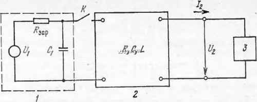 -О о- Рис. 5.10. Схема генератора ГЭМИ Генераторы импульсов наведенных напряжений и токов С целью имитации наволок, возникающих в типовых цеиях радио- и элек-тротехиич ского оборудовагшя РЭС прп грозовых воздействиях, используются специальные генераторы импульсов наведенных напряжений и токов (имитаторы грозовых перенапряжений). Имитаторы представляют собой отдельный класс генераторов, к которым предъявляют следующие требования: наиболее точно имитировать напряже1П1я и (или) токи, возникающие в цепях РЭС при грозовых воздействиях; обладать возможно малым выход1гым сопротивлением, чтобы низкоомные нагрузки не оказывали заметного шунтирующего влияния на имитируемые сигналы; иметь широкш ! д1гапазон изменения амплитуд генерируемых сигналов; не оказывать допол1П1тельного помехового влия1шя по каким-либо трактам, не предиазиачепным для этой цели (по цепям питания, управления, заземления и т. п.). Имитаторы грозовых перенапряжений серийно у нас в стране пока не выпускаются. В связи с этим в каждом конкретном случае при имитпропаиии в ![]() Рис. 5.11. Структурная с.че.ма имитатора грозовы.х перенапряжений: / - накопитель энергии; 2 - разрядно-формирующий контур: 3 - объект испытания иепях РЭС наводимых грозовыми разрядами напряжений и токов приходится разрабатывать и создавать оригинальные конструкции. Анализ применяемых на практике схе.м имитаторов грозовых перенапряжений показывает, что, несмотря на их многообразие, все они строятся по единому функциональному принципу (рис. 5.11). Имитаторы грозовых перенапряжений содержат емкостный накопитель энергии Си заряд которого производится через зарядное сопротивление /?зар от источника постоянного напряжения U\ \\ разрядно-формирующий контур, задача которого формировать импульсы напряжения и тока наводок требуемых амплитудно-временных характеристик в процессе разряда емкости С\. Разрядно-формирующий контур состоит из набора смещанно соединенных активных сопротивлении R и реактивных элементов L и С. Таблица 5.6 Генераторы наведенных напряжений и токов а ri Временные параметры -ф н. с 1,2/50 10/700 100/700 Колебательный /=1 МГц 8/20 10/1000 форыа Принштиальная схема ![]() ![]() ![]() и, с, ![]() <i-с распространенных параметров ![]()