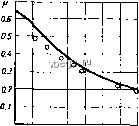 Космонавтика Конструктивные устройства воздухозавес (26) подставляя известные площади ворот и отверстий 5 и 7, получим 0,0576 0,043* (26а) откуда f ..= 0,0346 л*. При действии завесы уменьшится коэффициент расхода воздуха через ворота и уменьшится эквивалентное сопло Fэк, соответствующее сопротивлению всей модели. Величина эквивалентного сопла Рак при действии завесы может быть найдена из соотношения (27) подставляя полученное выше значение F, = 0,0346 м , определяем f, =0,0346-/ м\ (27а) Зная FsK прн действии завесы, можно найти Еоэффициент расхода воздуха ц через ворота при действии завесы из уравнения (28) в табл. 2 приведена обработка опытных данных по уравнению (28) для односторонней боковой завесы с углом а = 45° и 30- = 1. в графах 1 и 2 табл. 2 помещены опытные данные ~~ и Т(лица 2